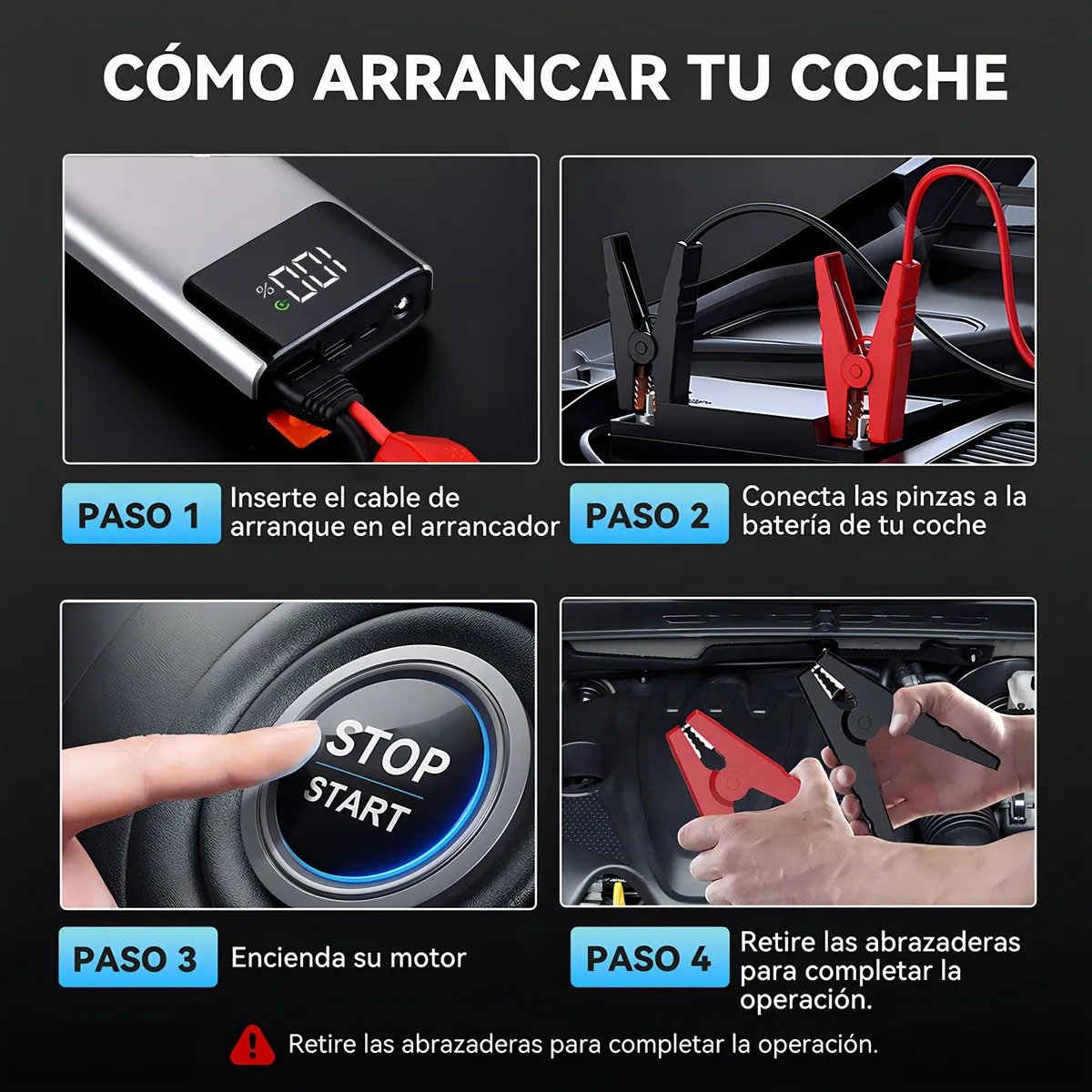• Corriente de salida de 4,000 A para un arranque potente y rápido.