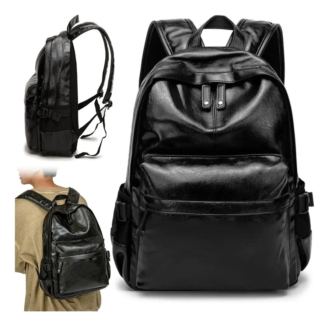 Mochila de Cuero Impermeable en color Negro con 36% de DESCUENTO