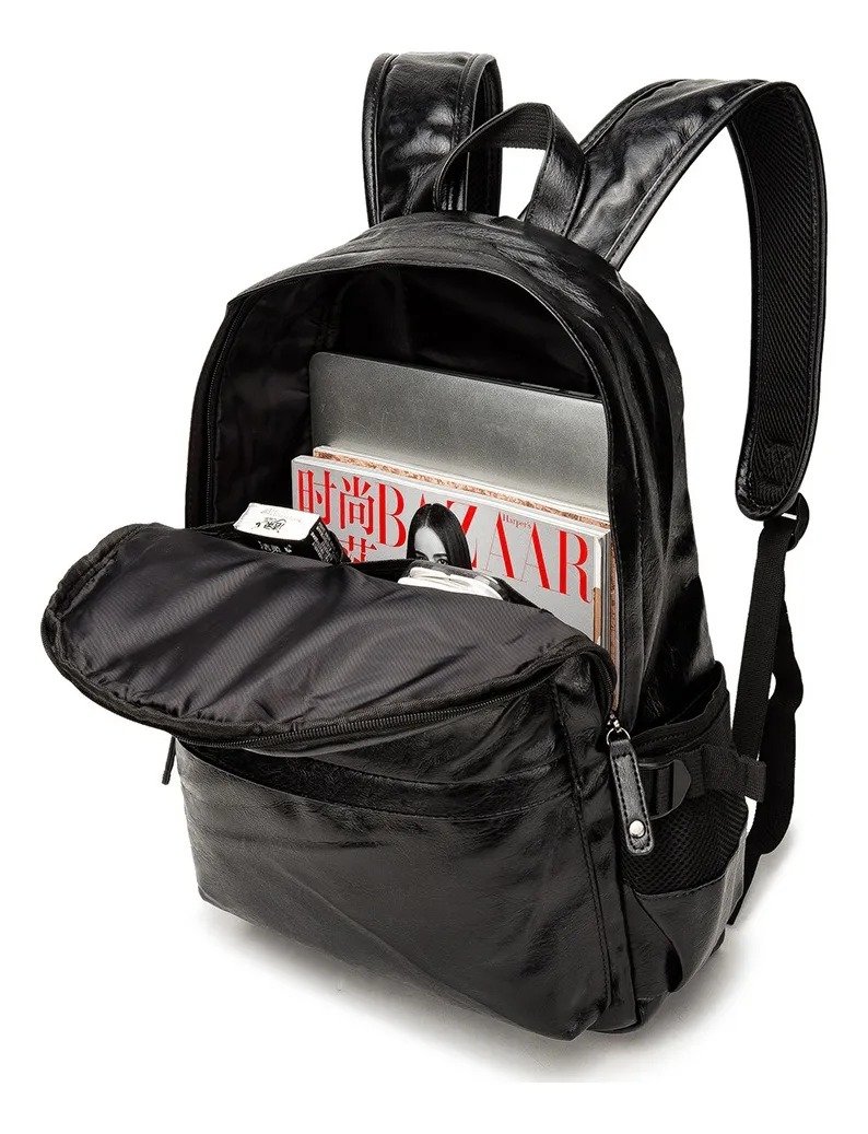 Mochila de Cuero Impermeable con Diseño de tela Liso, ideal para guardar Laptop y en color Negro.