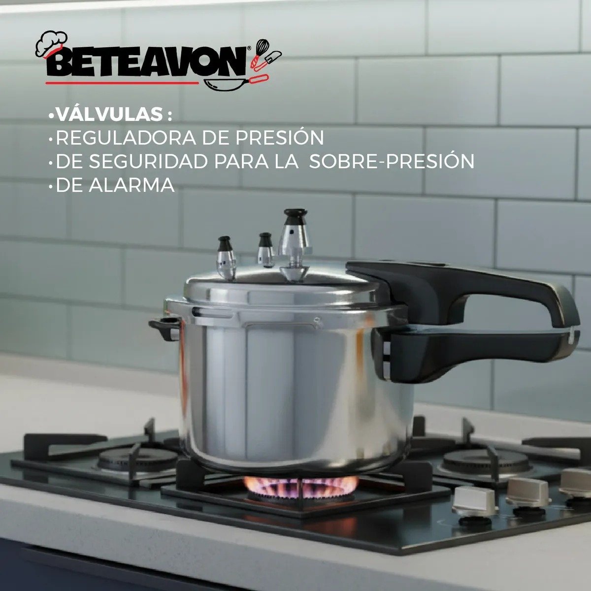 Olla Express de Presión Beteavon de Aluminio, con 8 Litros de Capacidad y con Válvula de Seguridad.